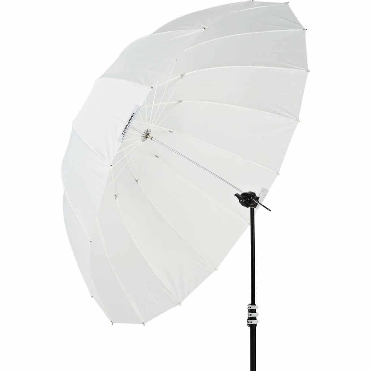 Todos los paraguas Deep Profoto tienen una forma parabólica profunda, en comparación con la de un paraguas normal. Cuanto más profunda sea la forma, mayor control tendrás sobre la difusión de la luz. También te permite enfocar y modelar la luz con solo deslizar el eje del paraguas hacia delante o hacia atrás sobre su soporte. Los paraguas translúcidos se utilizan para capturar imágenes a través de ellos, dado que difuminan y suavizan la luz mediante la reducción del contraste. Los paraguas translúcidos resultan perfectos para crear una luz suave cuando te encuentras muy cerca del sujeto.